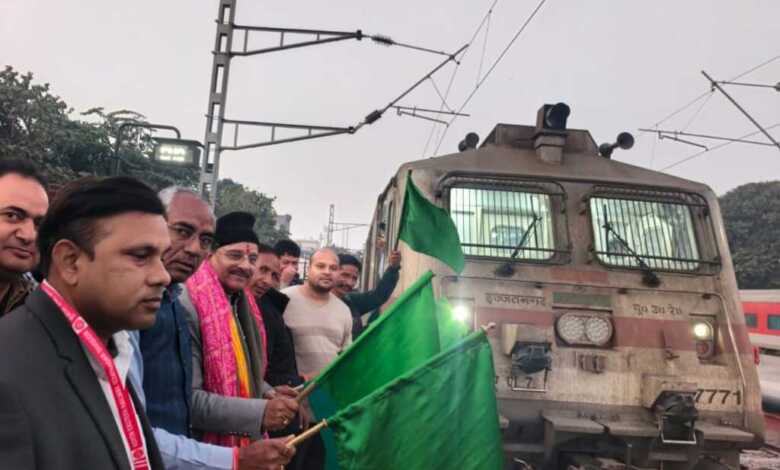 लालकुआं-बेंगलुरु स्पेशल एक्सप्रेस रेलगाड़ी को हरी झंडी दिखाकर सांसद अजय भट्ट एंव विधायक डॉ मोहन सिंह बिष्ट ने किया रवाना