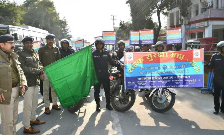 Haldwani:-सड़क परिवहन एवं राजमार्ग मंत्रालय भारत सरकार के निर्देशानुसार 16 जनवरी से प्रारंभ हुए सड़क सुरक्षा माह 2026 के अंतर्गत नैनीताल पुलिस द्वारा जन-जागरूकता को बढ़ावा देने के उद्देश्य से हल्द्वानी में यातायात जागरूकता रैली का आयोजन किया गया, जिसे एसएसपी नैनीताल डॉ० मंजुनाथ टी०सी० ने पुलिस बहुउद्देशीय भवन हल्द्वानी से हरी झंडी दिखाकर रवाना किया। एसपी क्राइम नैनीताल डॉ० जगदीश चन्द्र के नेतृत्व में निकली इस रैली में सीपीयू, यातायात पुलिस, पेट्रोल कार, हल्द्वानी सर्किल के थानों की चीता मोबाइल, हाइवे पेट्रोल वाहन शामिल रहे और रैली शहर के प्रमुख मार्गों से होते हुए हाइडल गेट से वापस लौटकर पुलिस बहुउद्देशीय भवन पर संपन्न हुई। रैली के माध्यम से स्थानीय नागरिकों व वाहन चालकों से यातायात नियमों के पालन, सुरक्षित ड्राइविंग, हेलमेट व सीट बेल्ट के प्रयोग तथा सड़क सुरक्षा को लेकर सजग रहने की अपील की गई, वहीं रैली के उपरांत हल्द्वानी के प्रमुख चौराहों पर पुलिस टीमों द्वारा जागरूकता पंपलेट व बैनर वितरित कर लोगों को यातायात नियमों की जानकारी दी गई। इस अवसर पर एसपी हल्द्वानी श्री मनोज कुमार कत्याल, सीओ हल्द्वानी श्री अमित कुमार, प्रभारी निरीक्षक यातायात श्री महेश चंद्रा सहित यातायात पुलिस, सीपीयू एवं अन्य पुलिस बल मौजूद रहा, जबकि जनपद के सभी थाना व चौकी क्षेत्रों में भी सड़क सुरक्षा माह के तहत व्यापक जागरूकता कार्यक्रम आयोजित किए जा रहे हैं।